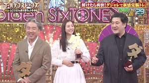 Actor Aya Ueto joins the SixTONES guys as they attempt to discern the crucial moments of various videos and identify rapidly descending items.
