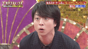 Guests Sho Sakurai and Sho Nakata compete in games that test their sense of size and ability to identify rapidly spinning objects at a mere glance.