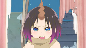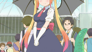 小林小姐早上出門上班時,在外面發現了一隻龍。她看見那隻龍變成身著女僕裝的女孩,驚訝得說不出話來。