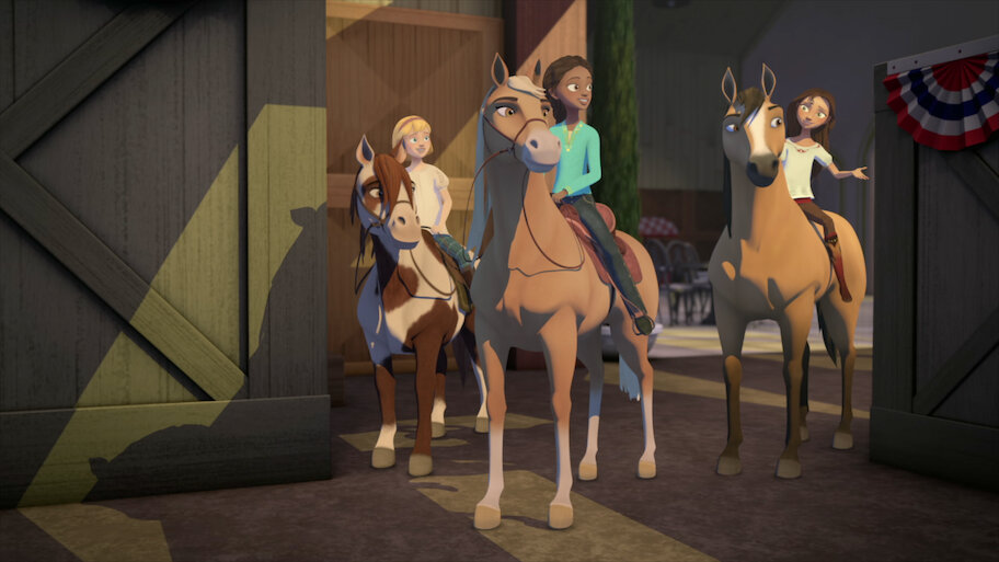 Con mucha determinación, Lucky convence a Pru de que le enseñe a montar para participar con Spirit en la carrera anual del Club de la Silla.